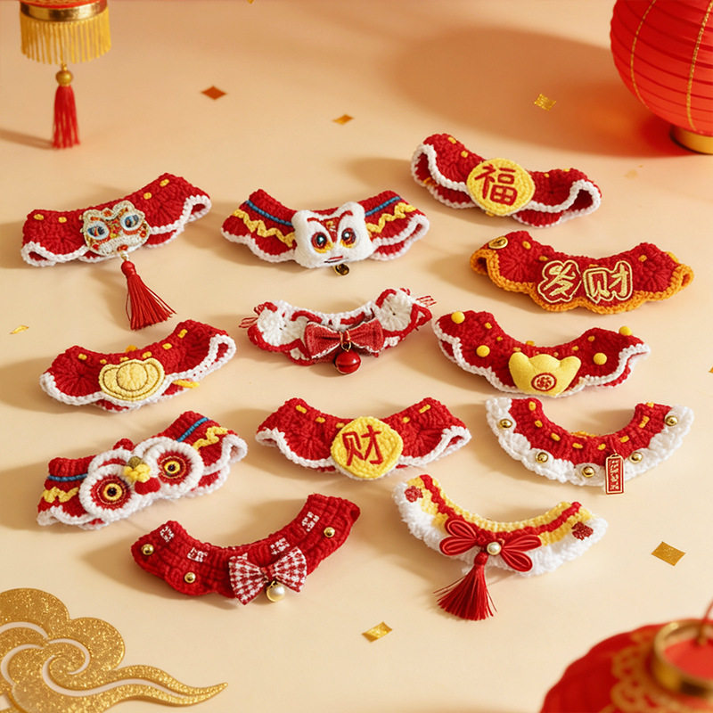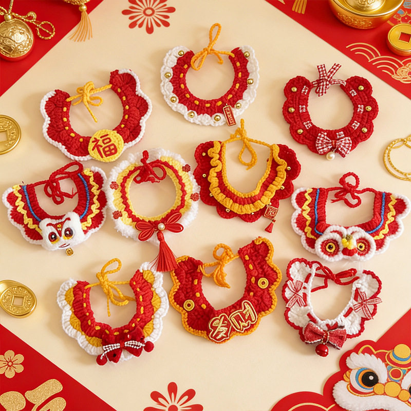 新年围脖合集宠物猫咪过年围巾狗狗针织项圈跨年喜庆毛线醒狮领结
