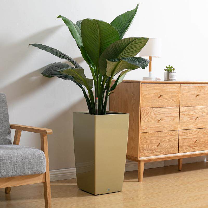 塑料花盆方形高筒落地三组合自吸水懒人花盆室内简约现代花盆花器