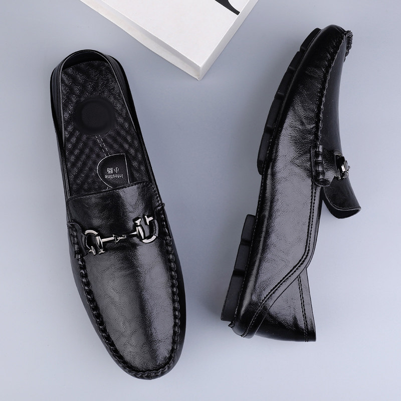 2025夏季新款豆豆鞋男鞋真皮系带翻毛皮高级感休闲一脚蹬百搭懒人