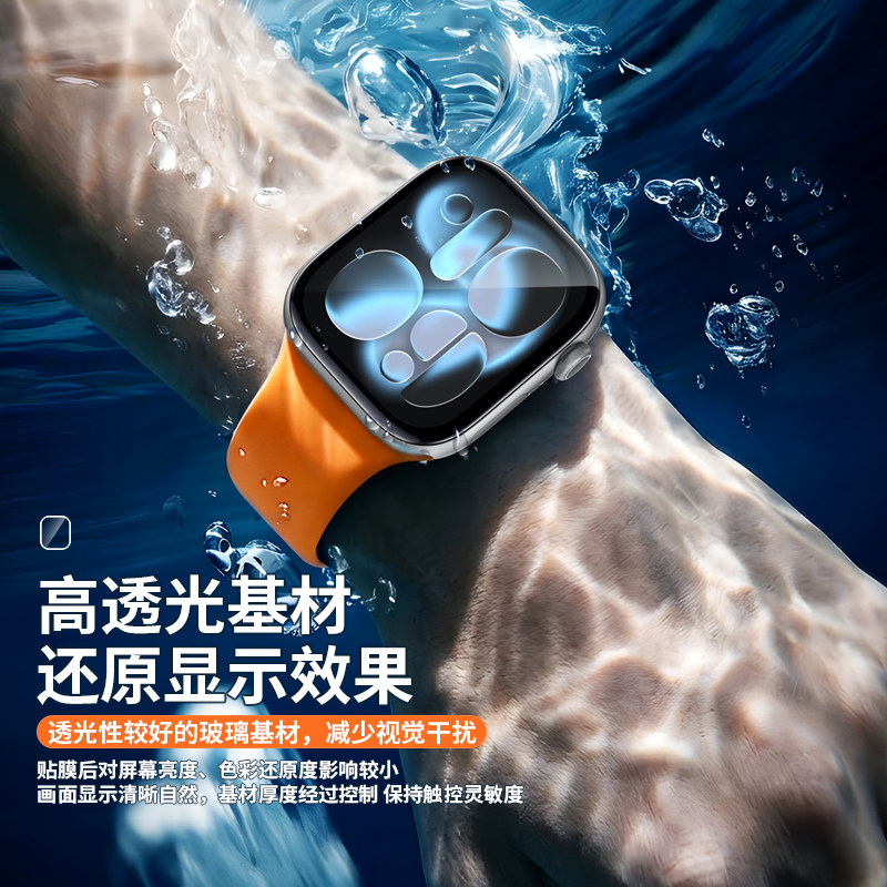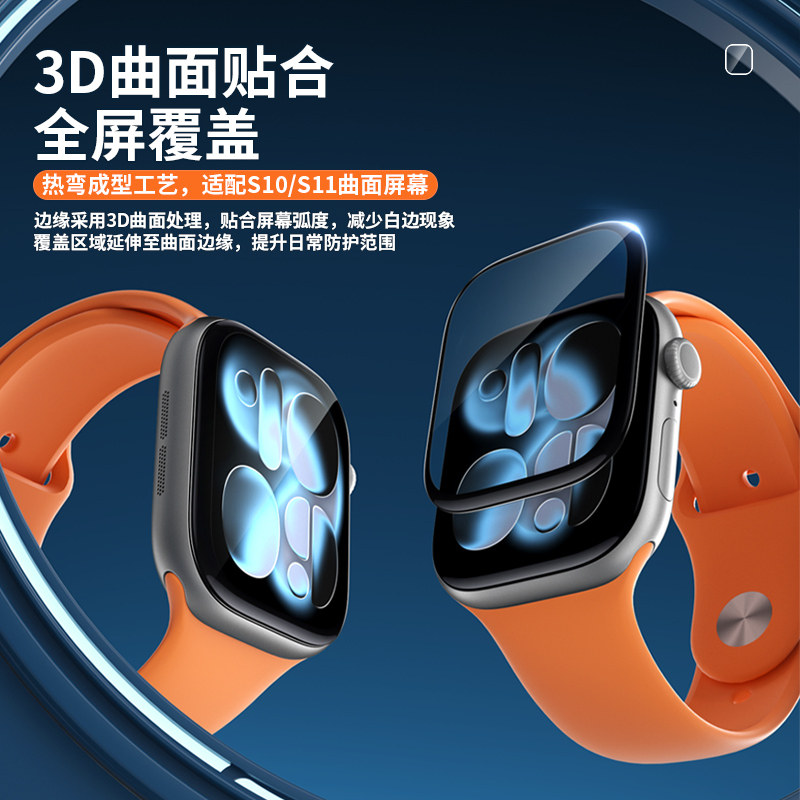 蓝猩适用applewatchS11苹果手表S10钢化膜watch太空仓11贴apple神器applewatch保护玻璃iwatch全屏覆盖抗指纹