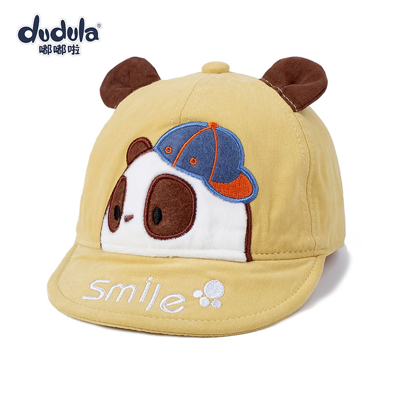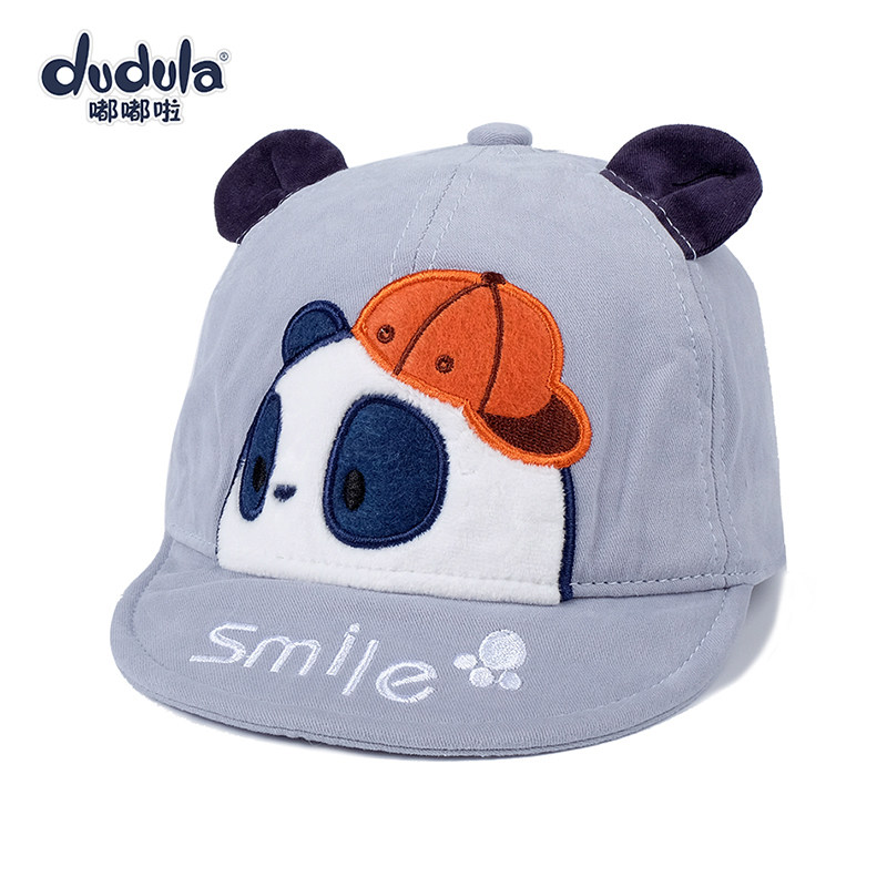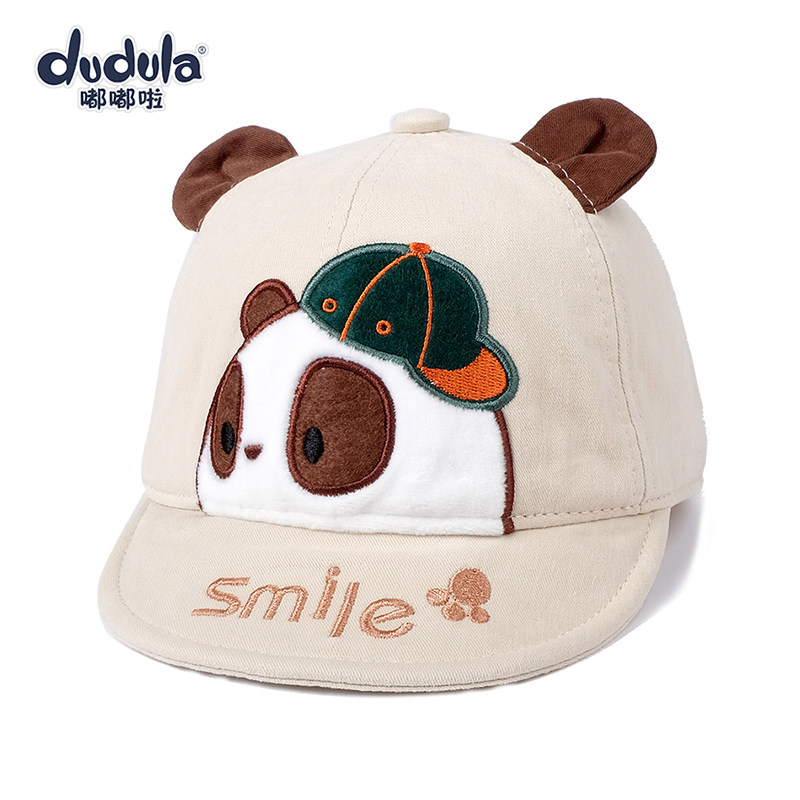 嘟嘟啦春秋婴儿帽子卡通熊猫纯棉男女宝宝遮阳帽薄防晒软檐儿童帽