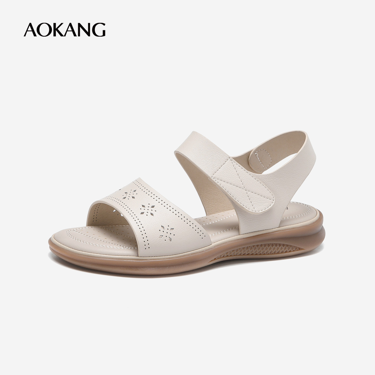 奥康妈妈凉鞋 夏季款真皮软底舒适妈妈鞋防滑平底魔术贴女休闲鞋