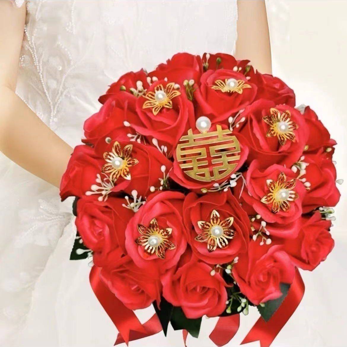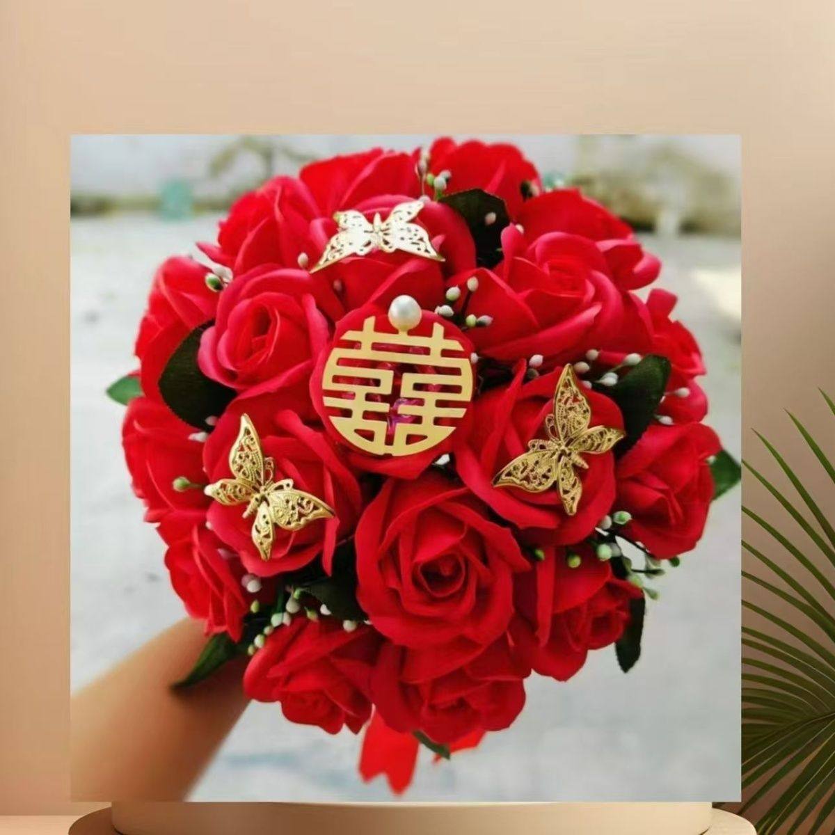 2024新款手捧花仿真花婚庆结婚新娘中式婚礼手捧仿玫瑰花束