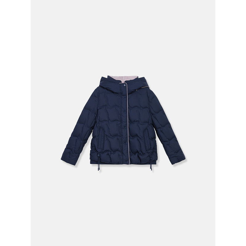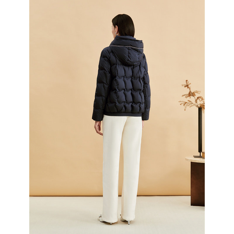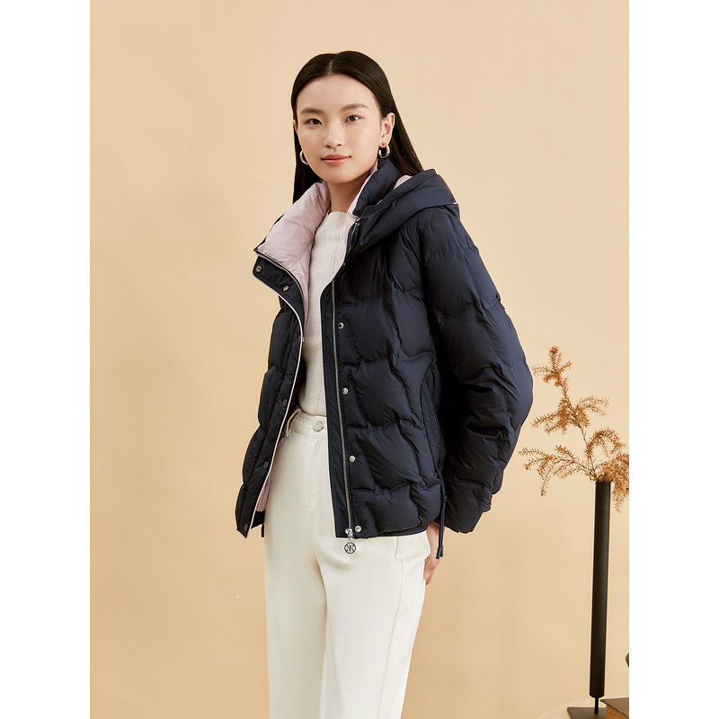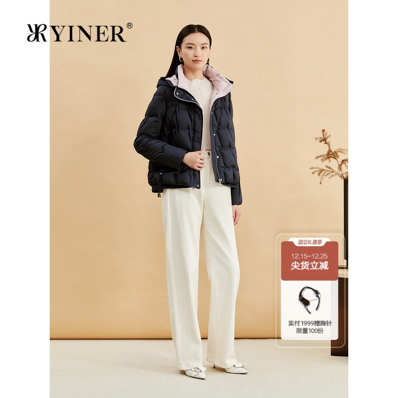YINER音儿专选女装冬季时尚短款零压感厚实保暖撞色连帽羽绒服