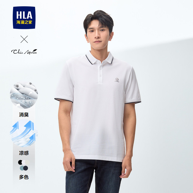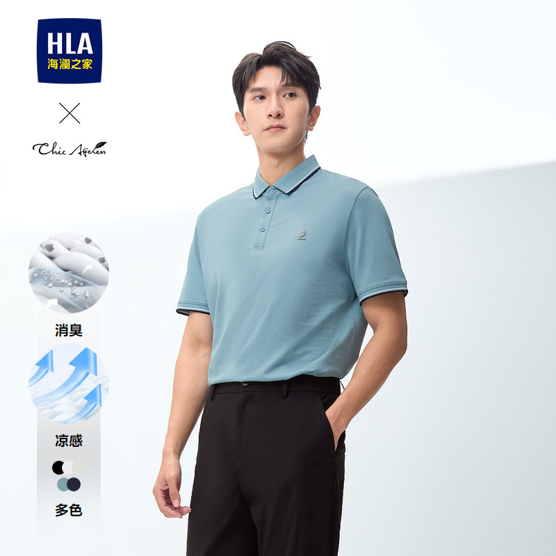 HLA/海澜之家凉感短袖POLO衫大码夏季新轻薄透气翻领T恤上衣男装
