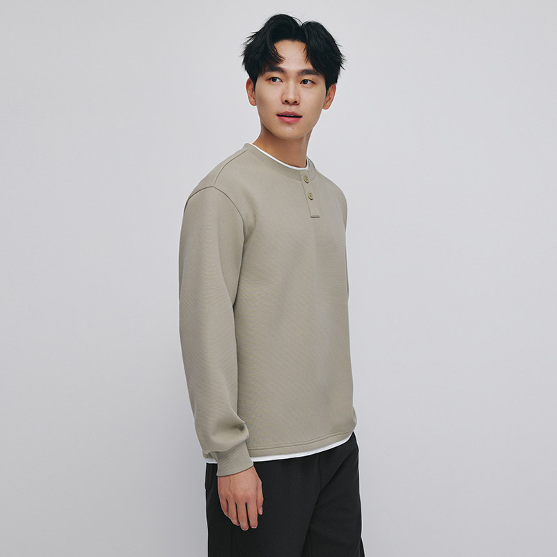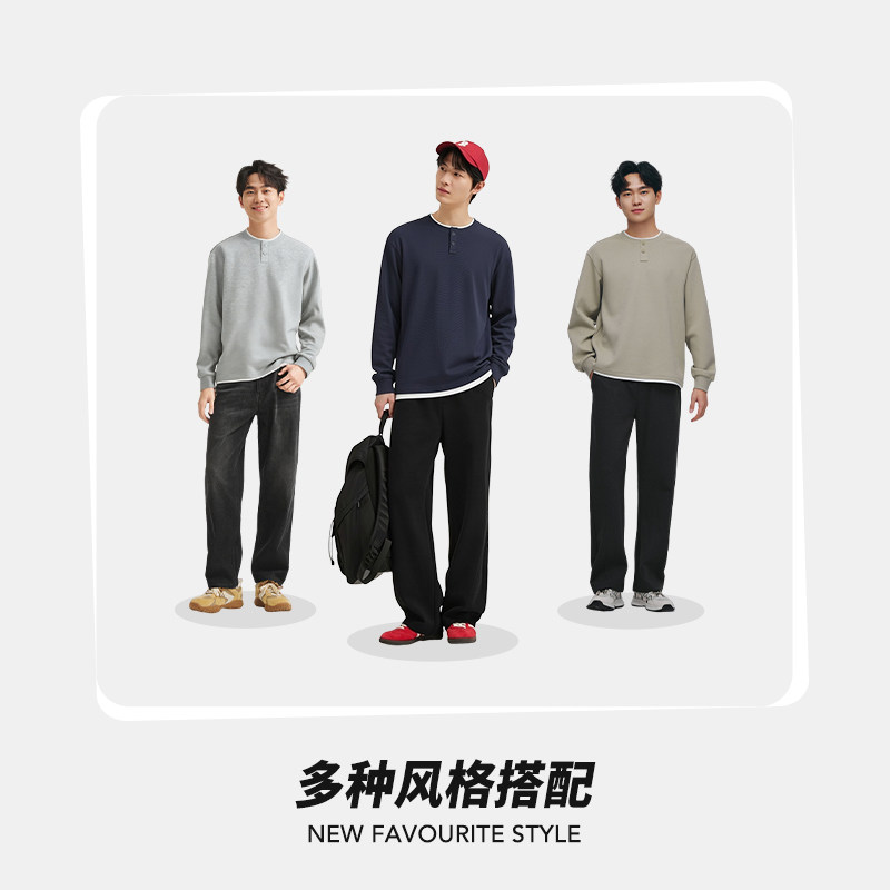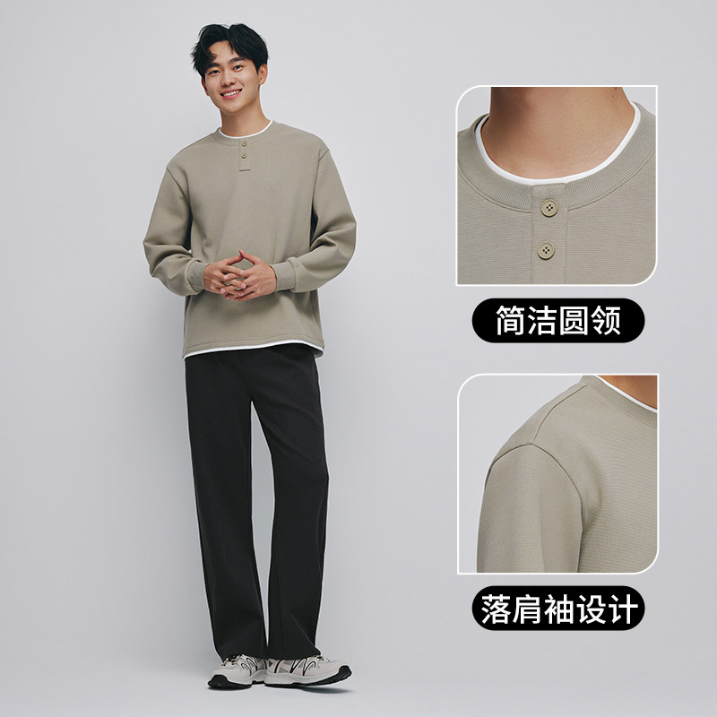热风男士假两件卫衣2025年秋季新款宽松纯色基础套头卫衣简约百搭