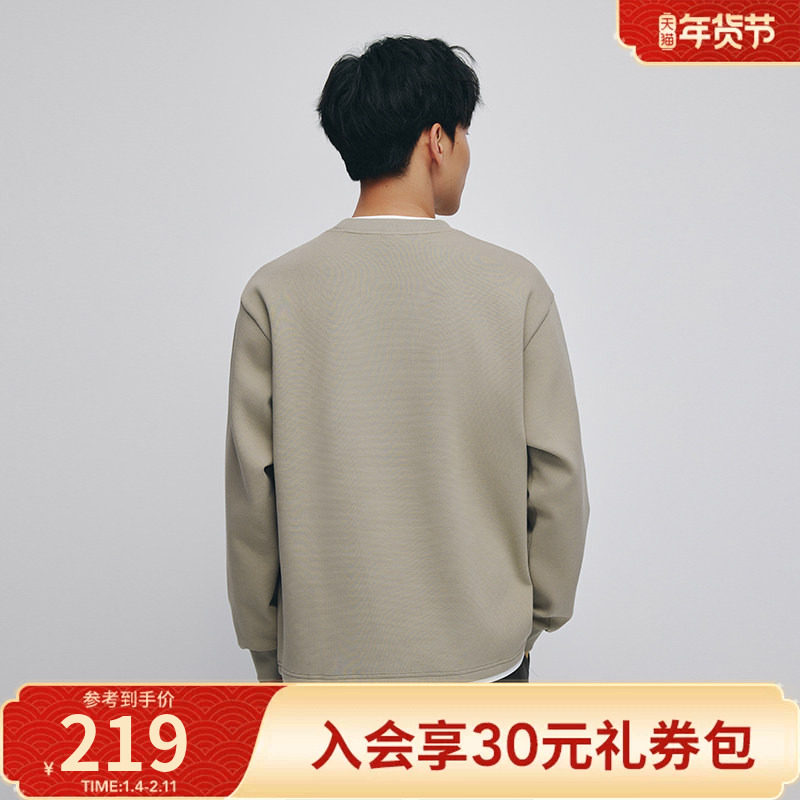 鸭鸭绵羊毛奥粒绒圆领卫衣2025年秋季新款男士简约百搭套头上衣Y