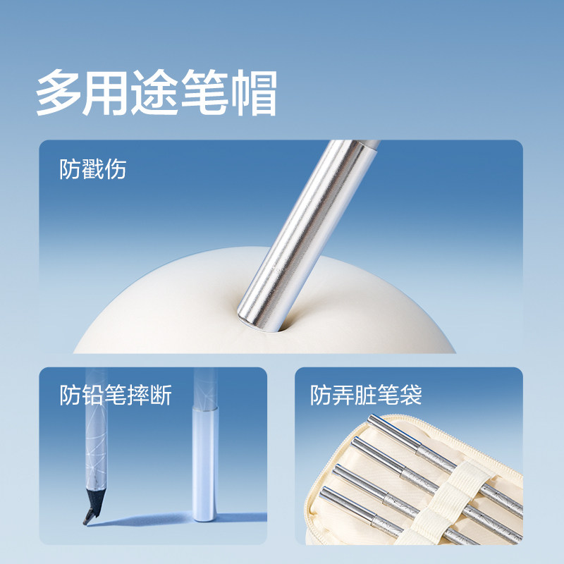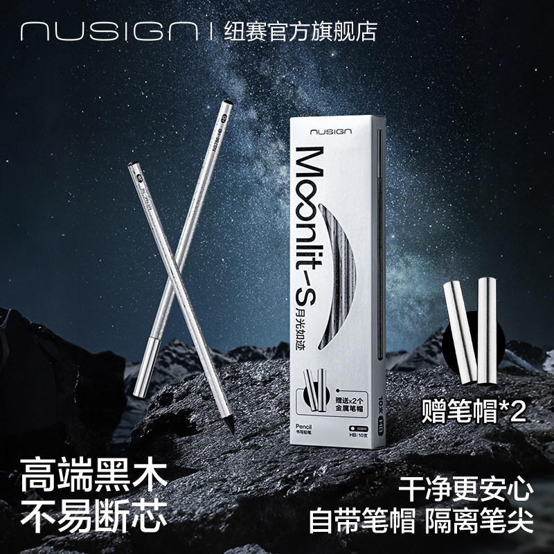 Nusign纽赛星际银圆杆黑木铅笔小学生专用一二年级含笔帽无铅毒高颜值小银杆2bHB考试幼儿园写字练字绘画安全