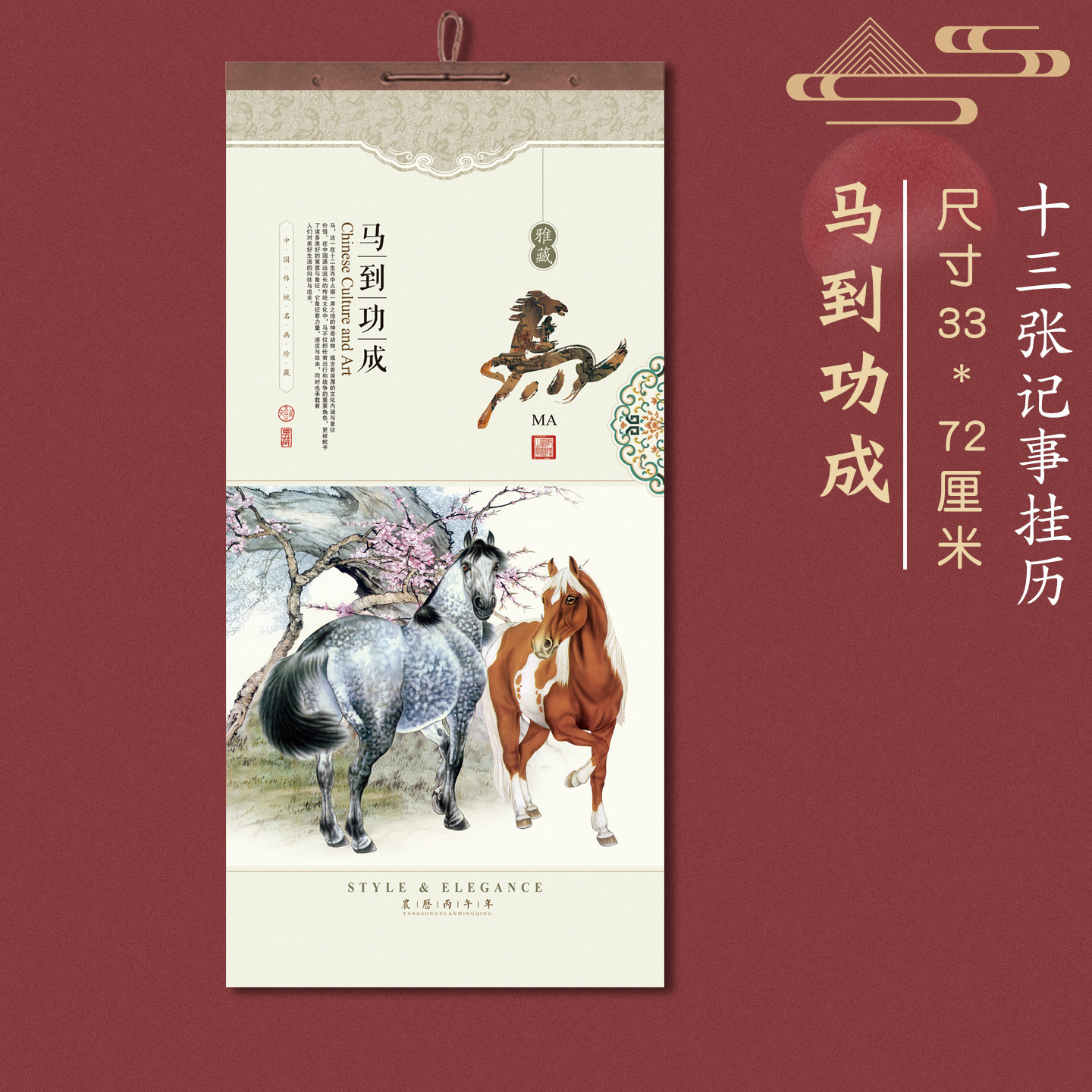 2026年挂历日历新款批发13张一月一张精致加厚中国风马年月历家用企业新年商务礼品广告印刷专版定制定做logo
