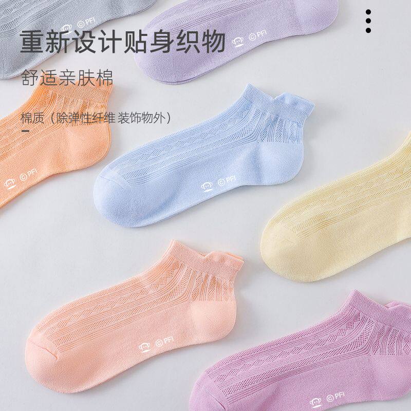 大嘴猴袜子女短袜纯棉夏天薄款袜子透气防臭印花镂空短袜糖果色