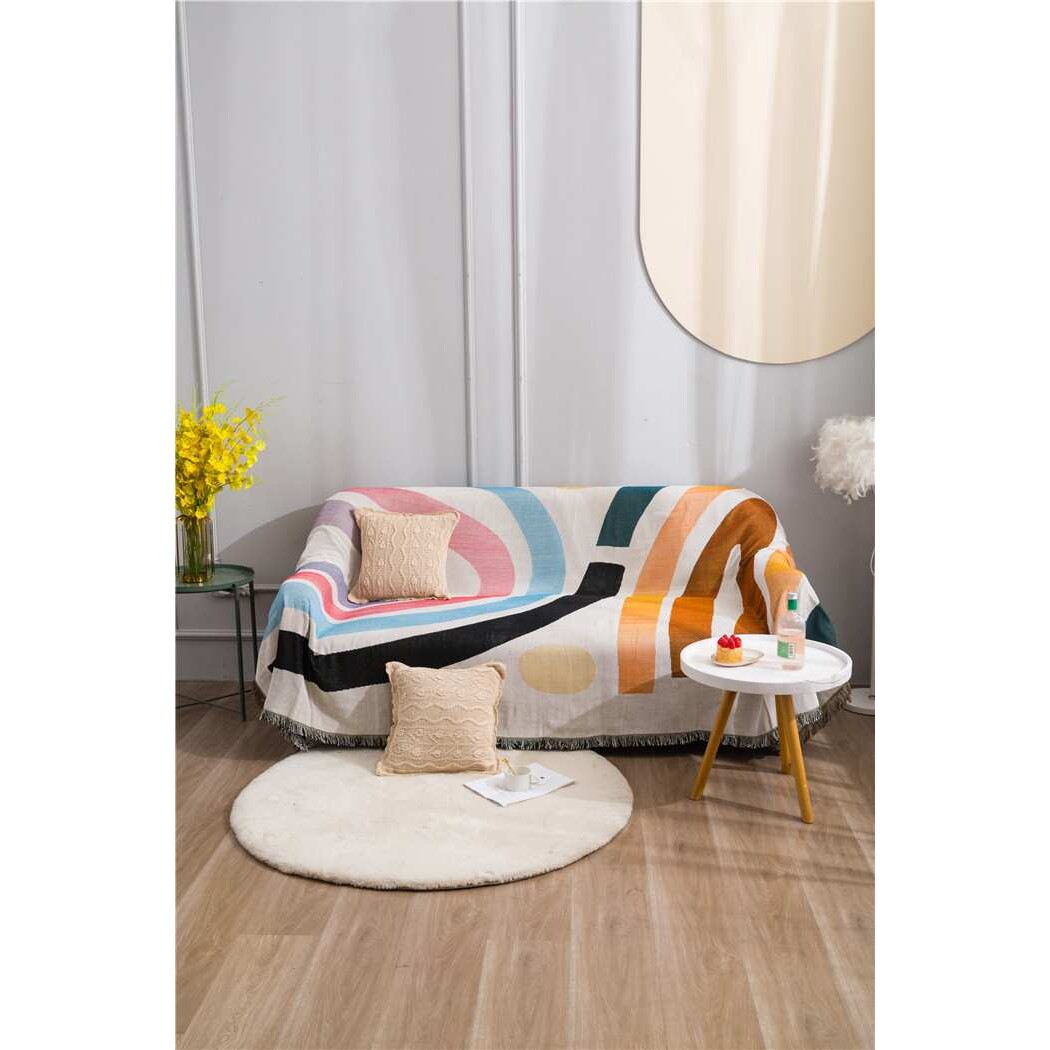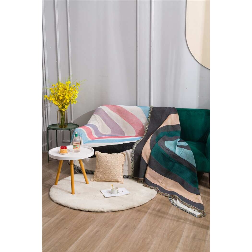 彩虹 沙发巾沙发罩沙发套保护罩单双人线毯全盖防滑布艺棉线