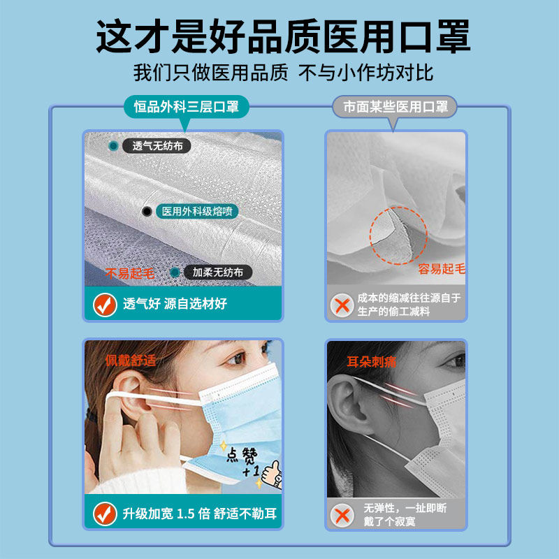 医用外科口罩一次性医疗三层官方正品旗舰店女高颜值透气单独包装