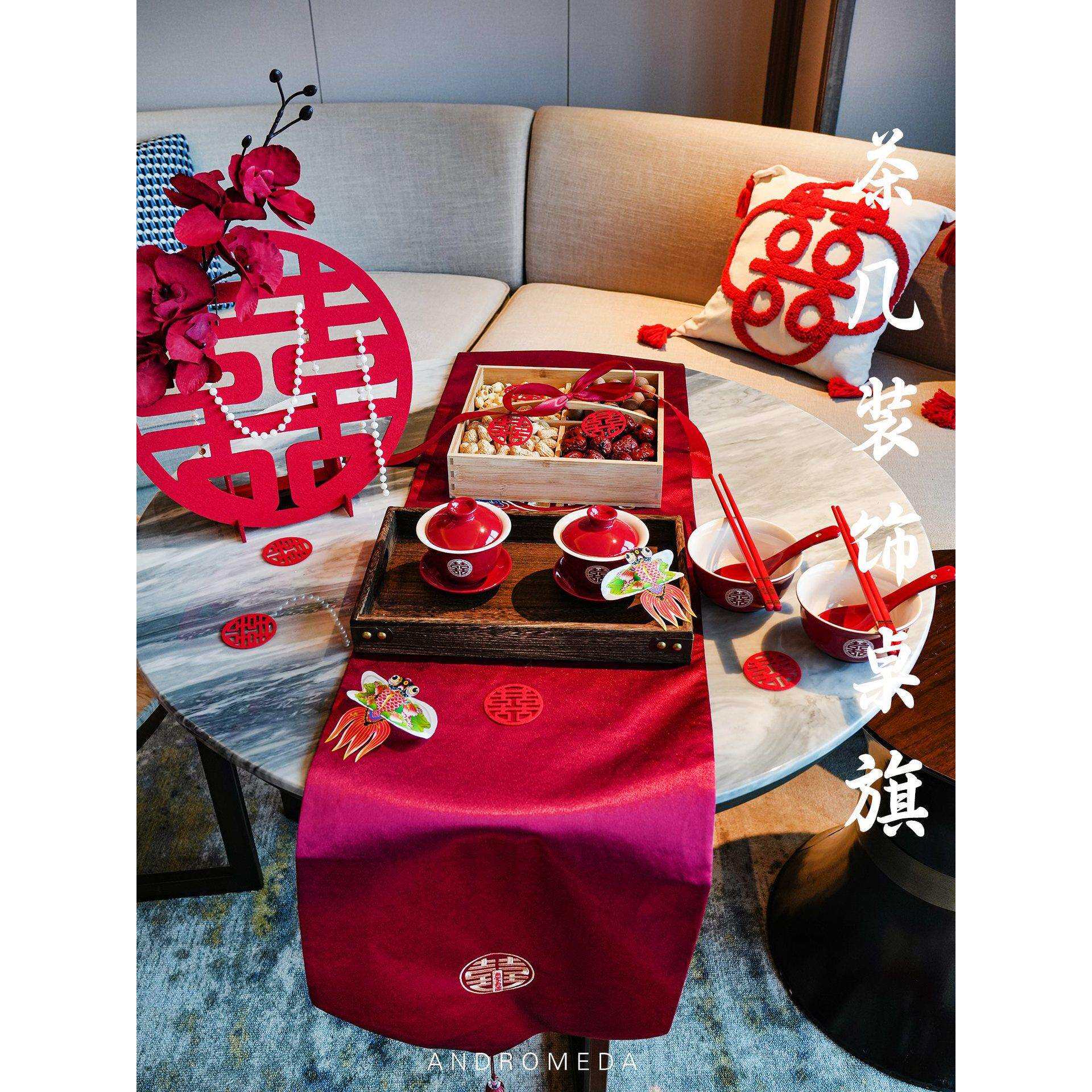 中式桌旗结婚用红色喜字茶几订婚桌布婚礼婚房装饰餐桌电视柜盖巾