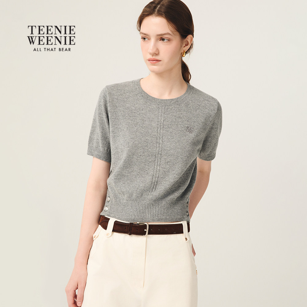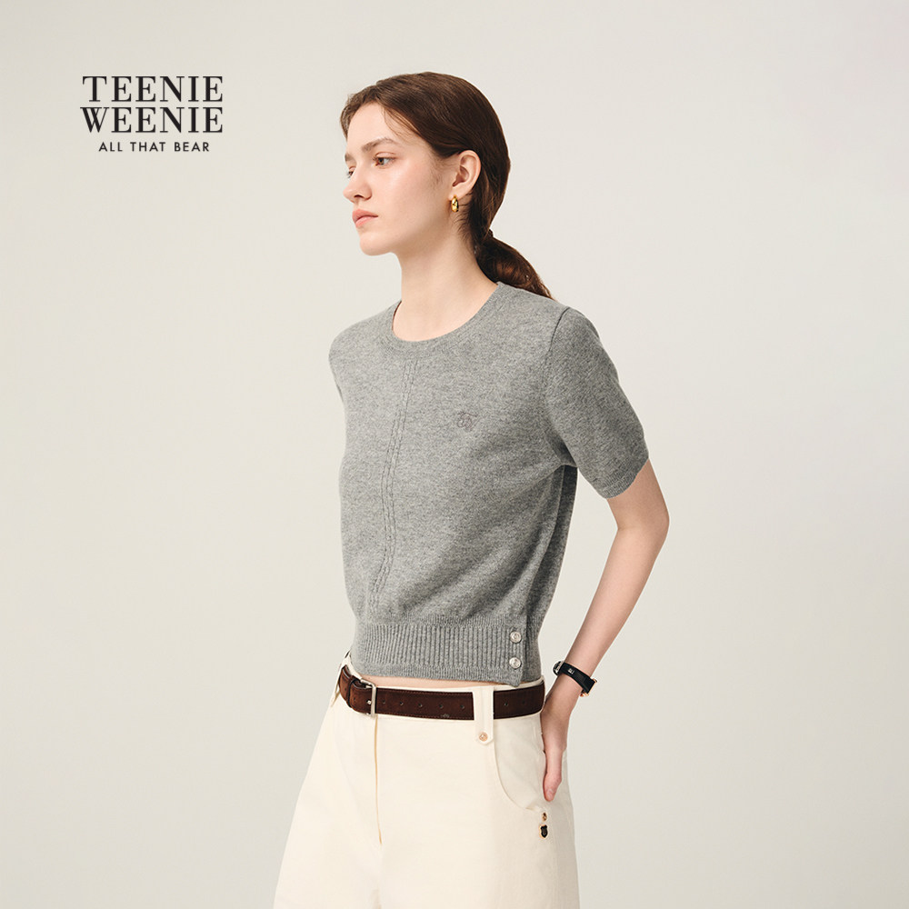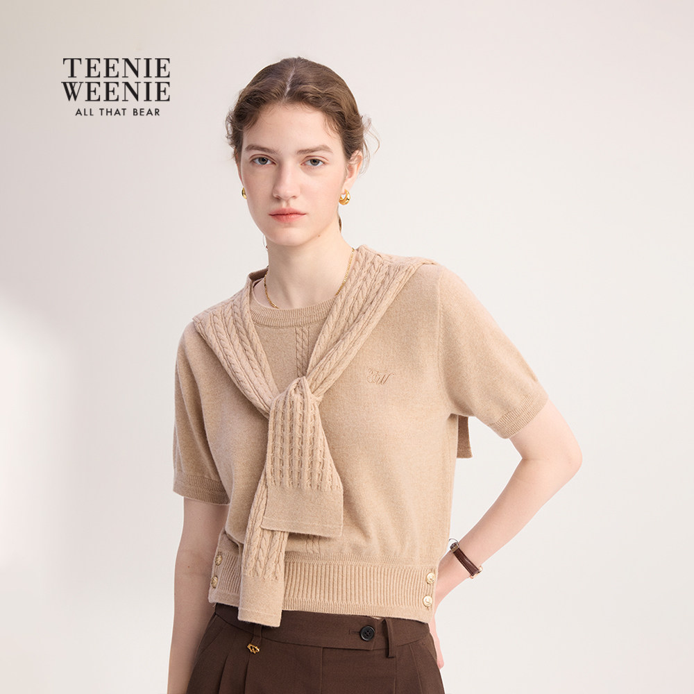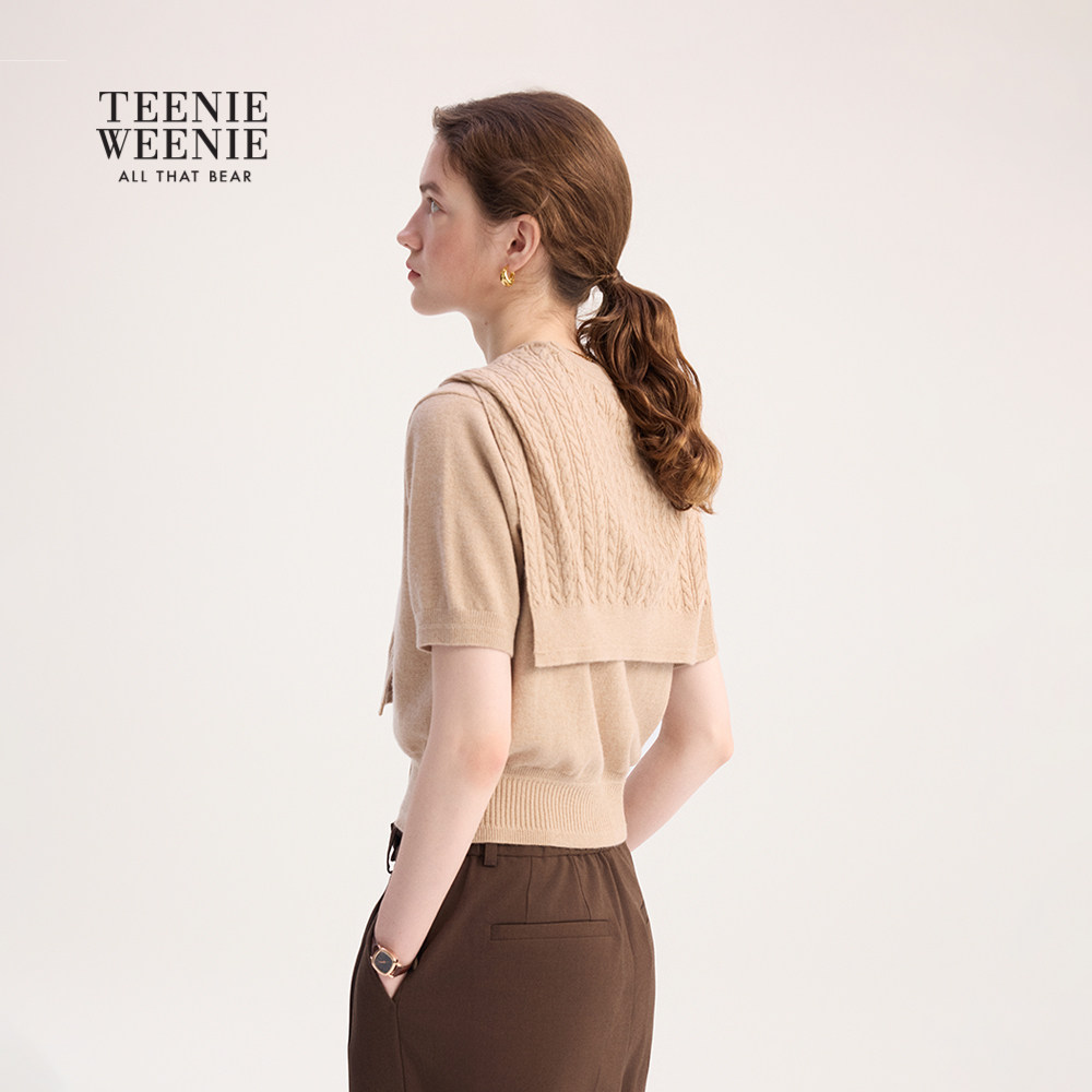 TeenieWeenie小熊女装毛针织衫2025年冬季新款时髦披肩款短袖毛衣
