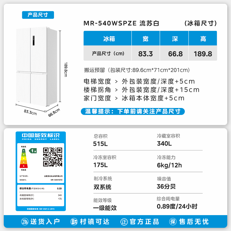 以旧换新补贴海尔539L十字双开四门一级能效无霜电冰箱家用大容量