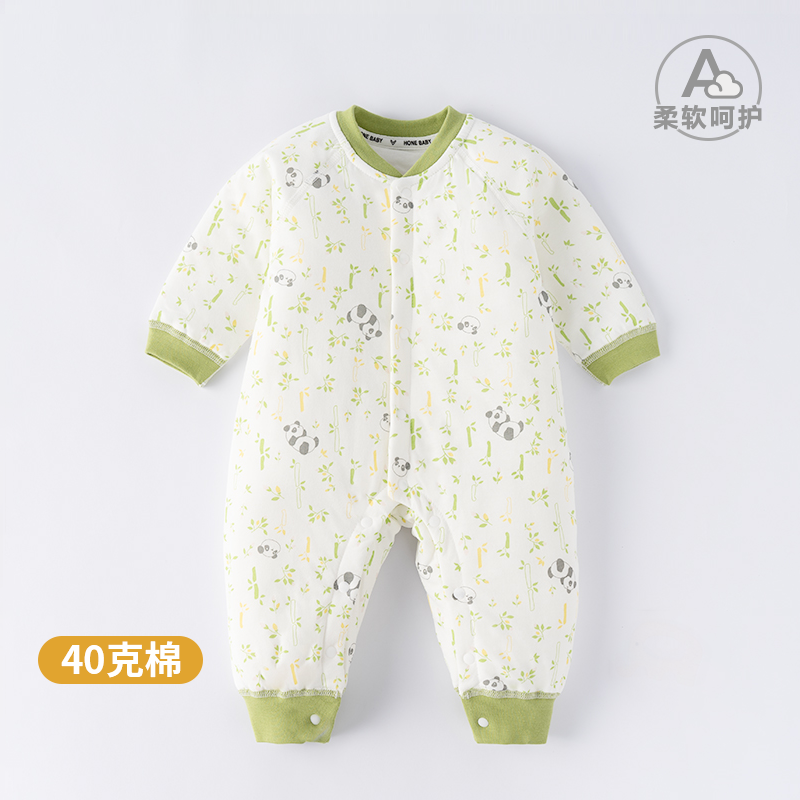 贝肽斯婴儿薄夹棉连体衣冬装外出新生幼儿宝宝衣服保暖空气棉睡衣