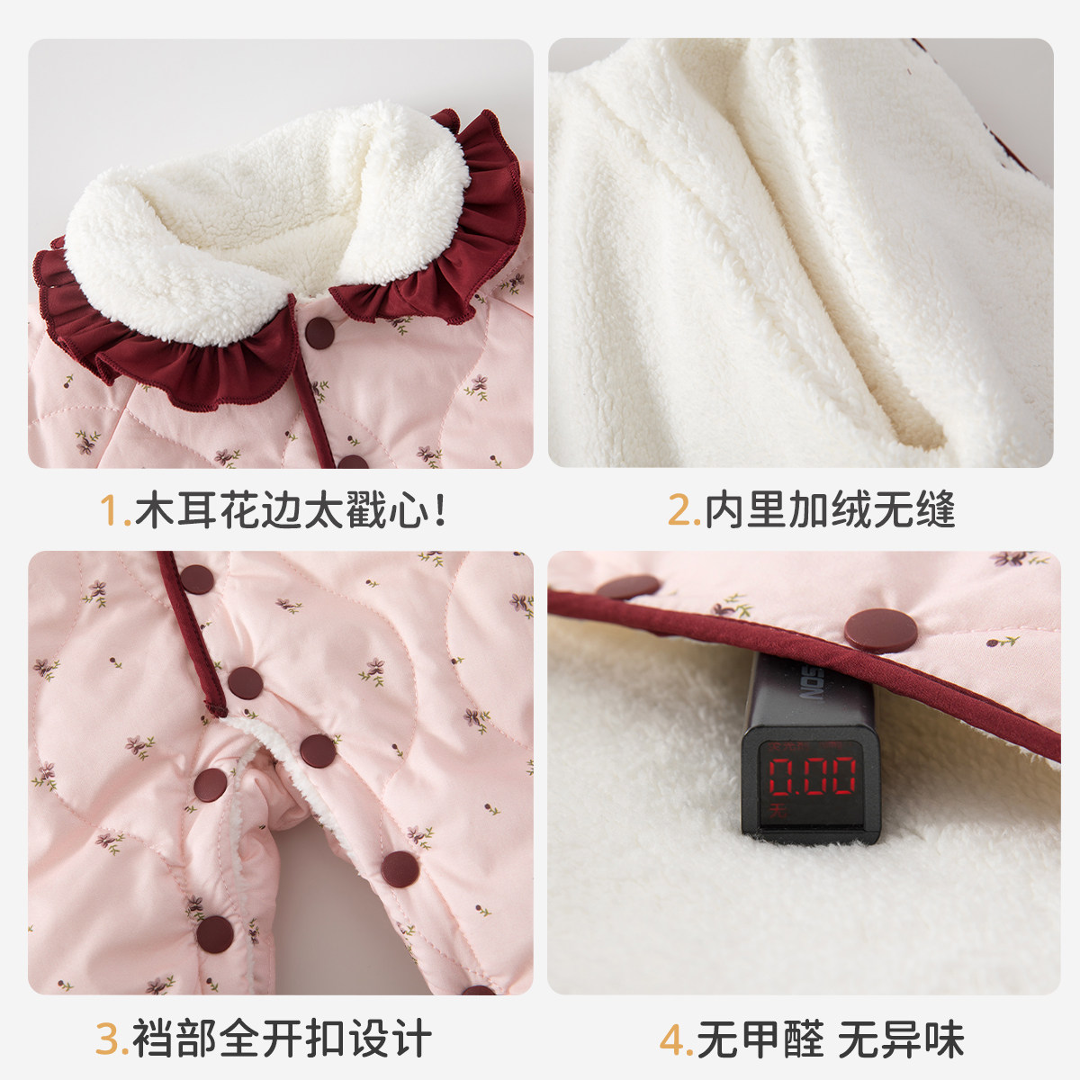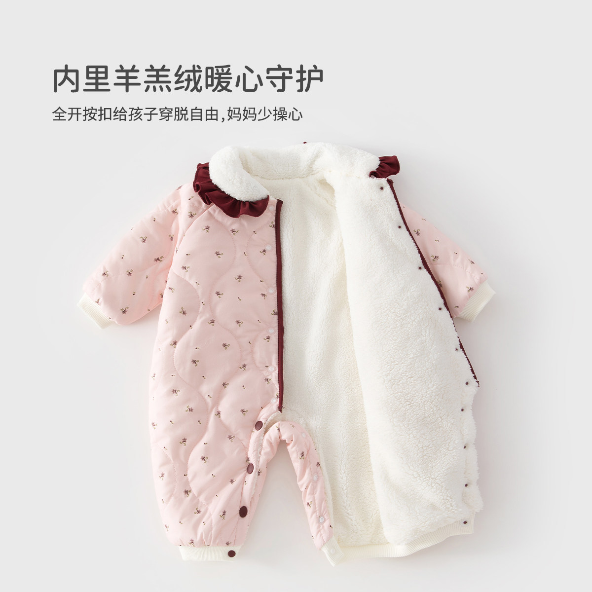 babycare冬季保暖山茶花连体衣宝宝包屁衣新生儿爬服外出婴儿衣服