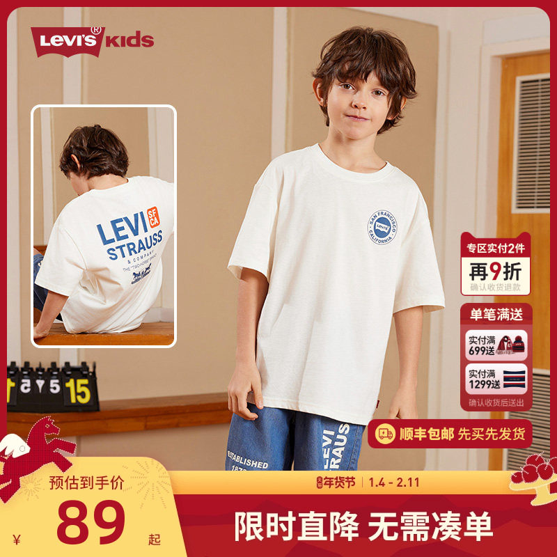 李维斯童装男童短袖T恤2025夏季新款儿童打底衫中大童女半袖夏装