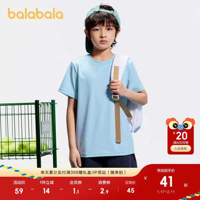 巴拉巴拉童装t恤2025儿童女童春夏装短袖大童运动男童速干上衣
