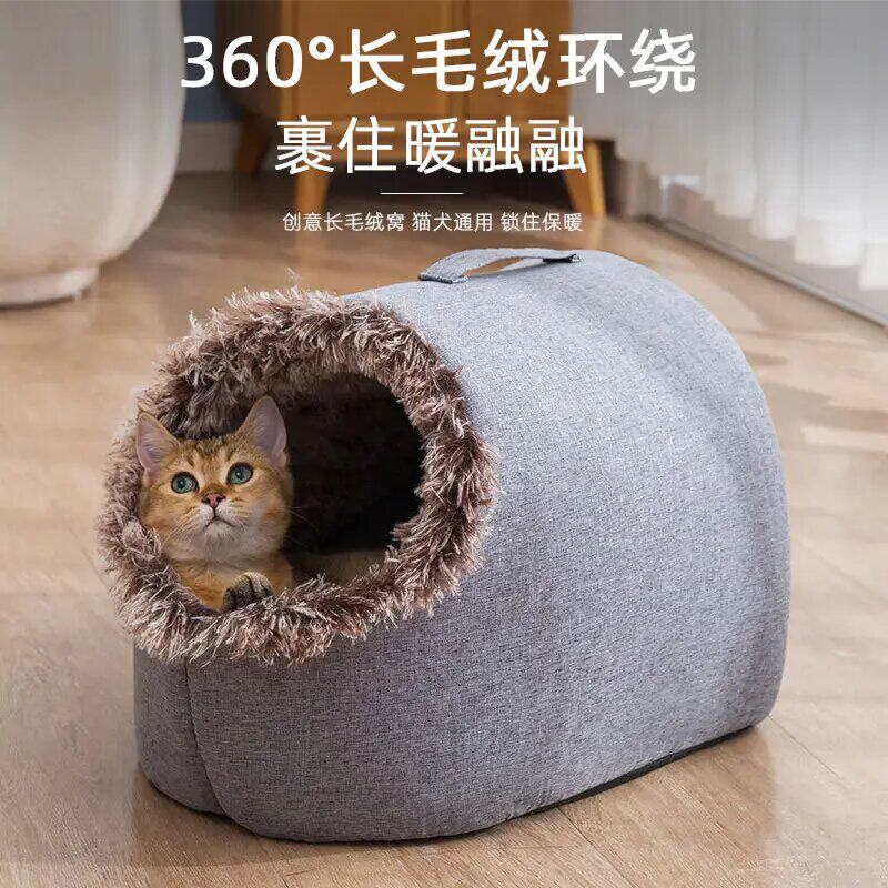猫窝冬季保暖封闭式安全感手提拖鞋防寒户外狗窝冬天加绒加厚猫窝