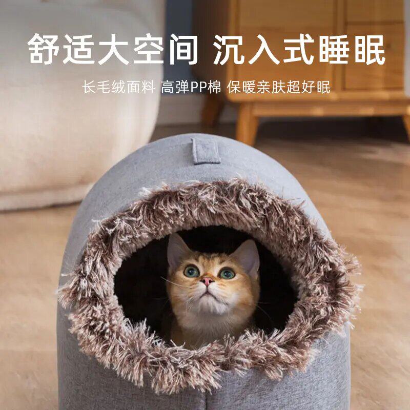 猫窝冬季保暖半封闭式可拆洗四季通用猫咪窝狗窝猫床猫屋幼猫窝垫