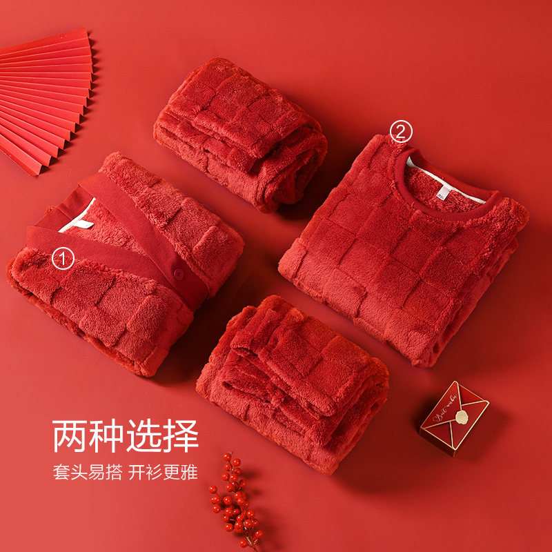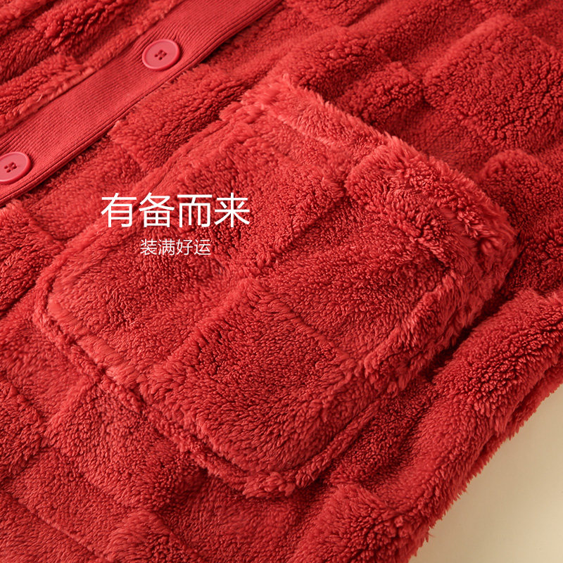 【烈儿超值年货节】造福鸟新款红色新年情侣睡衣开衫两件套