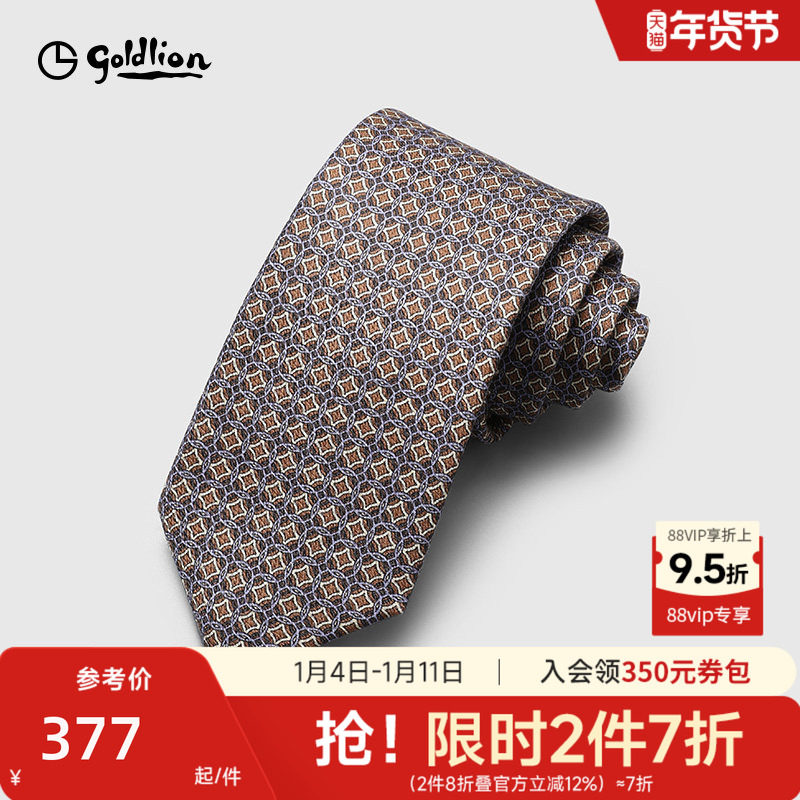 Goldlion金利来男士桑蚕丝复古学院风时尚百搭休闲衬衫正装领带男