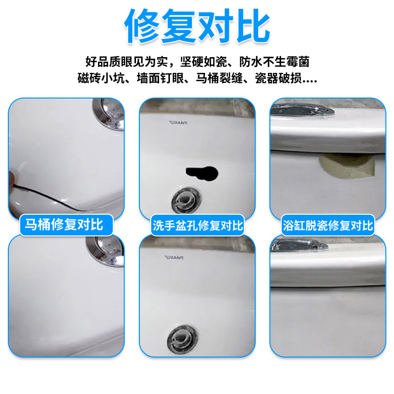 陶瓷釉面修补剂洗手盆洗脸盆补裂缝修复胶搪瓷锅洗手池浴缸马桶盖瓷器面盆瓷砖地砖无痕修补胶粘合剂陶瓷胶水
