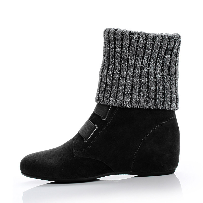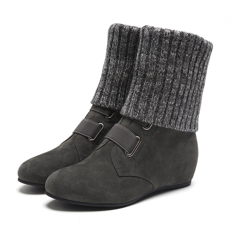 DG坡跟短靴女秋冬季加绒加厚保暖棉靴内增高毛线口中筒靴