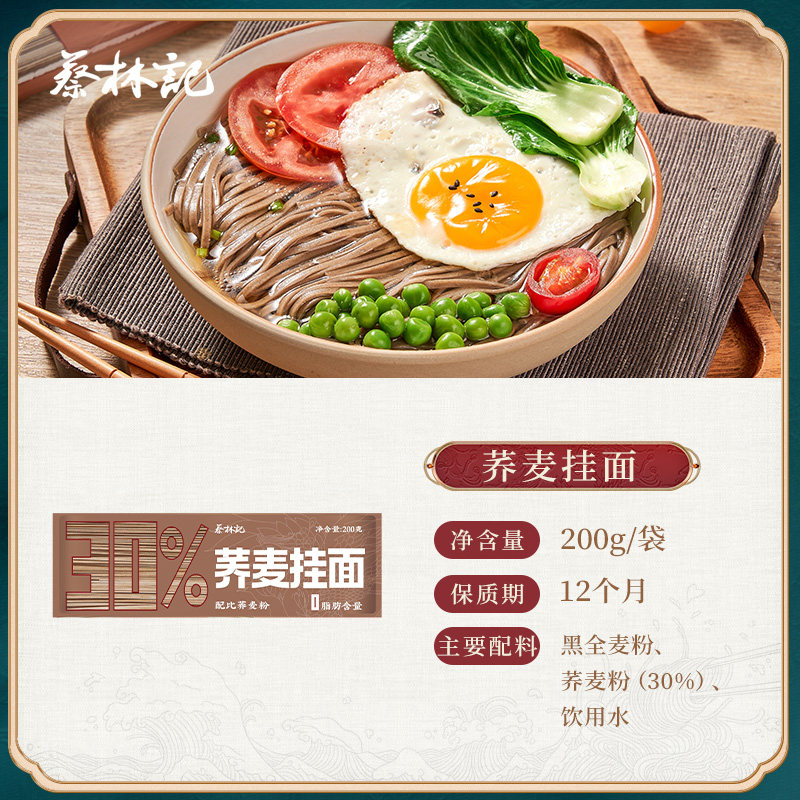 蔡林记0脂肪荞麦面轻食面条挂面低脂代餐粗粮全麦杂粮饱腹健康