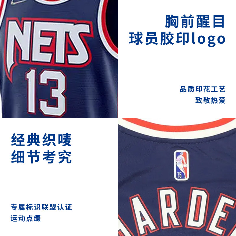 Nike耐克NBA官方75周年纪念版NBA篮网哈登速干SW球衣篮球服