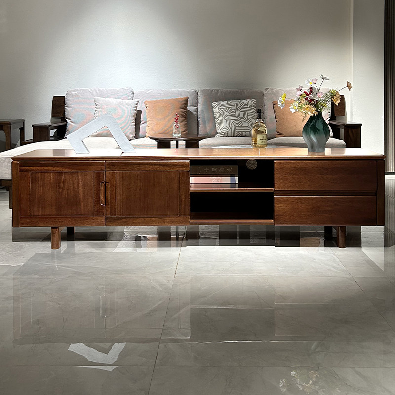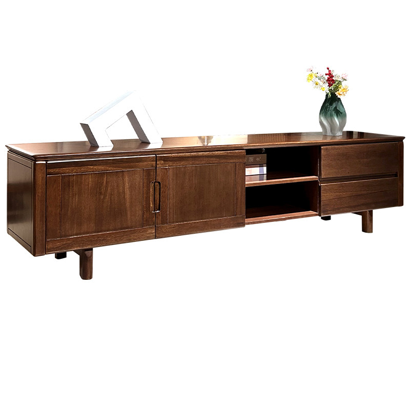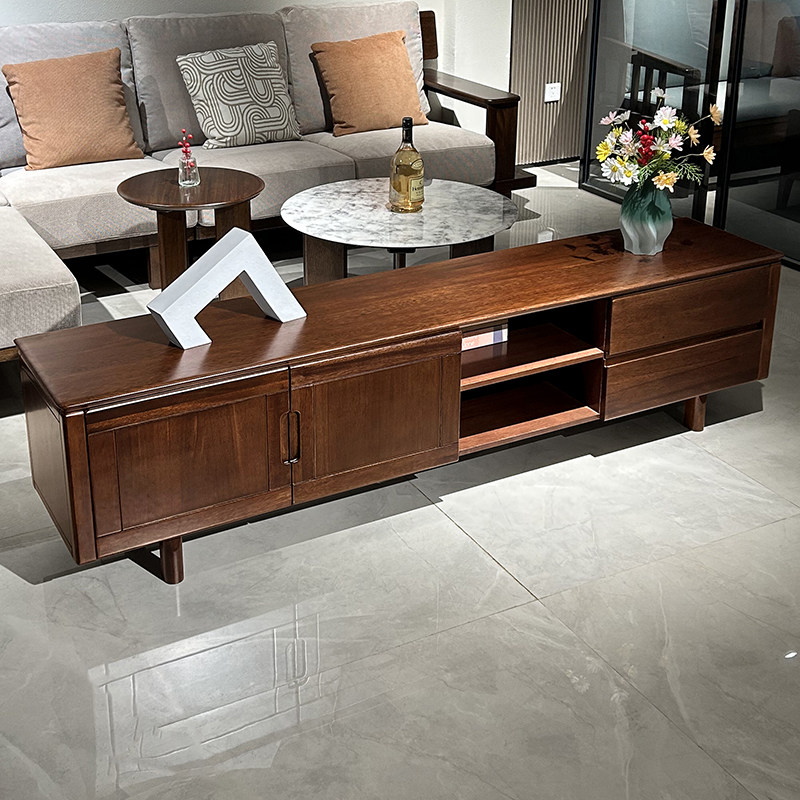 全实木电视柜客厅家用小户型简约现代胡桃木地柜2米落地储物柜