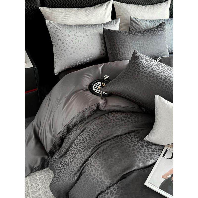 高端春夏季凉感60S莱赛尔四件套轻奢风豹纹提花丝滑裸睡被套床品