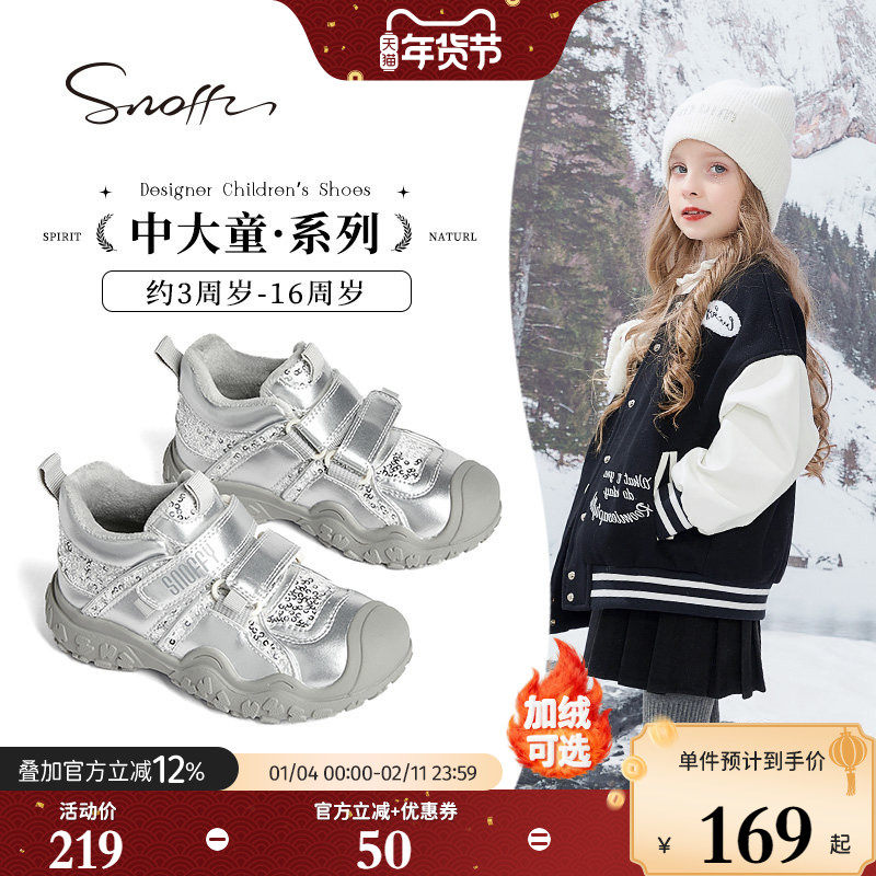 斯纳菲女童运动鞋秋冬新款儿童保暖棉鞋小女孩户外登山透气休闲鞋