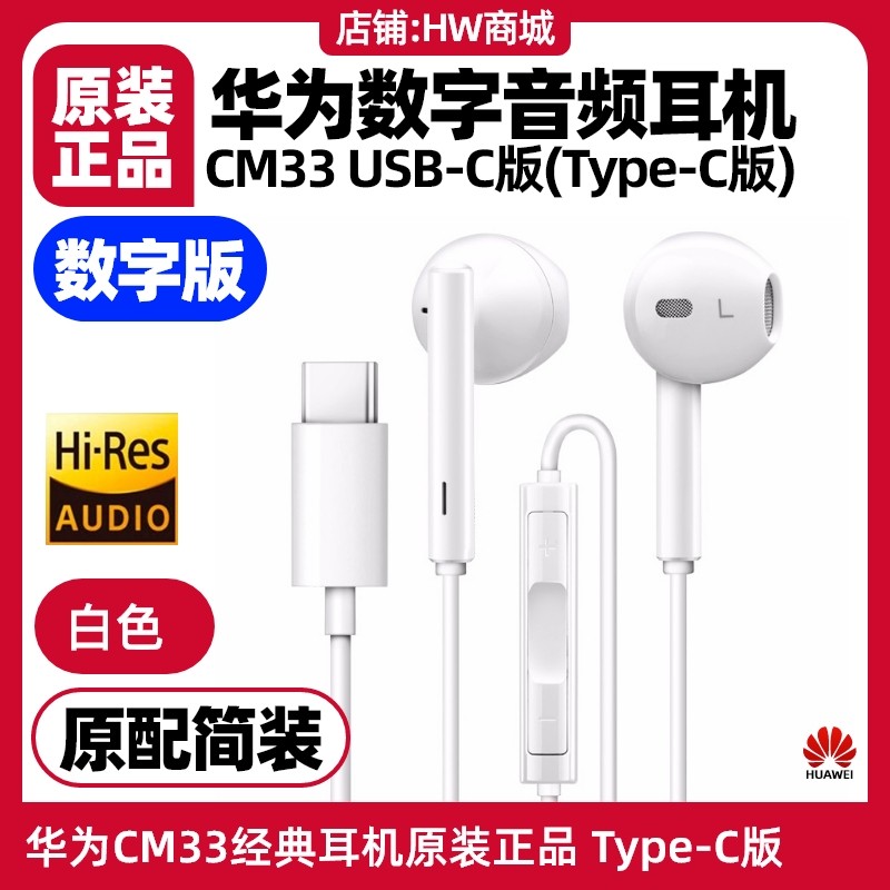 Hi畅享80/Hi畅享80s/Hi畅享80Pro经典数字音频耳机原装Type-C版扁口CM33半入耳式有线耳机