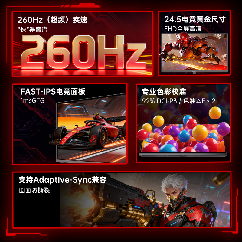 皓丽25GF811 24.5英寸260Hz台式电脑游戏电竞电脑显示器IPS屏幕