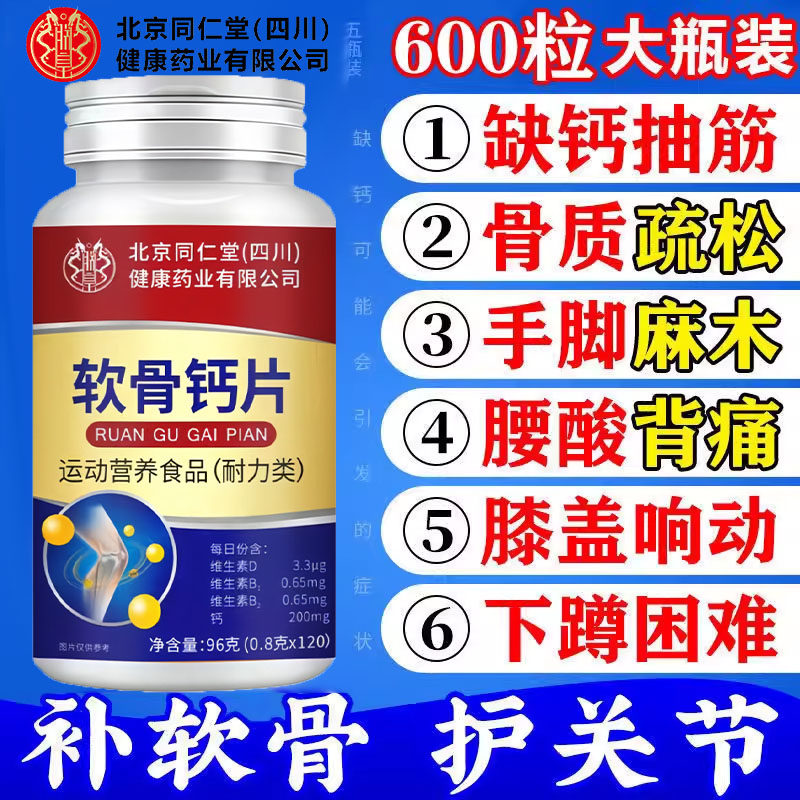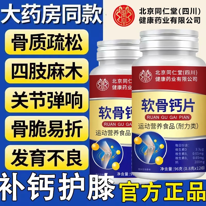 北京同仁堂软骨钙片中老年人腿抽筋骨质疏松腰腿疼官方旗舰店正品