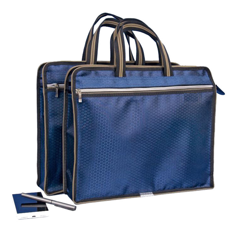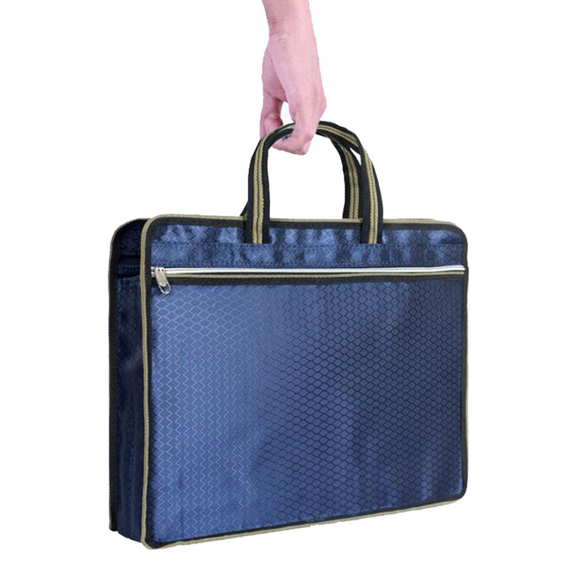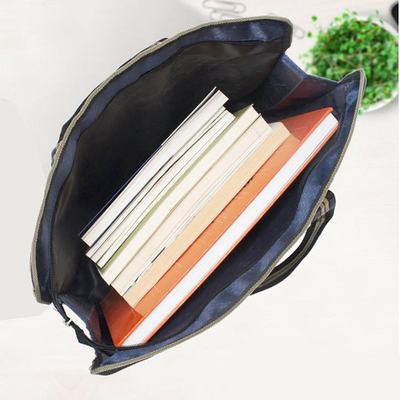 文件袋帆布商务牛津办公包学生手提资料男女拉链防水大容量电脑包手提袋蓝色公文包