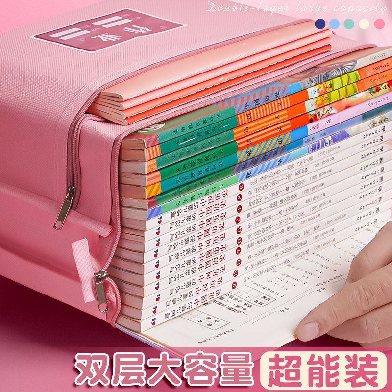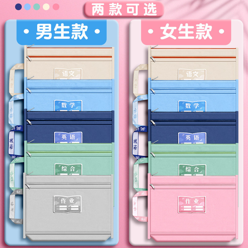 文件袋小学生用学科科目分类袋拉链式双层大容量书本课本试卷收纳袋拎书袋装卷子资料作业袋子帆布补习手提袋