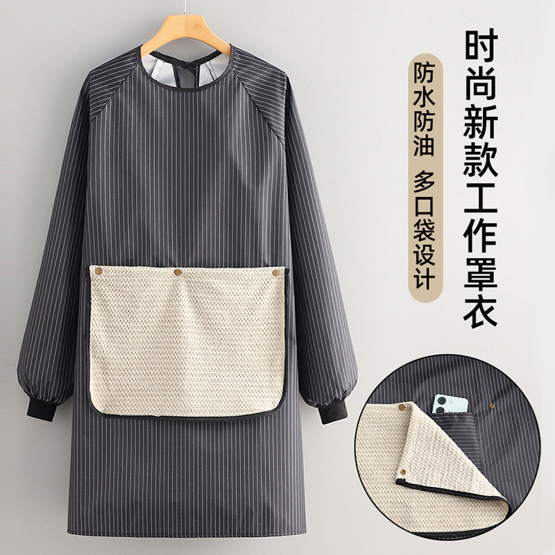 家用厨房防水防油围裙餐饮专用成人工作服长袖罩衣女做饭围腰男士