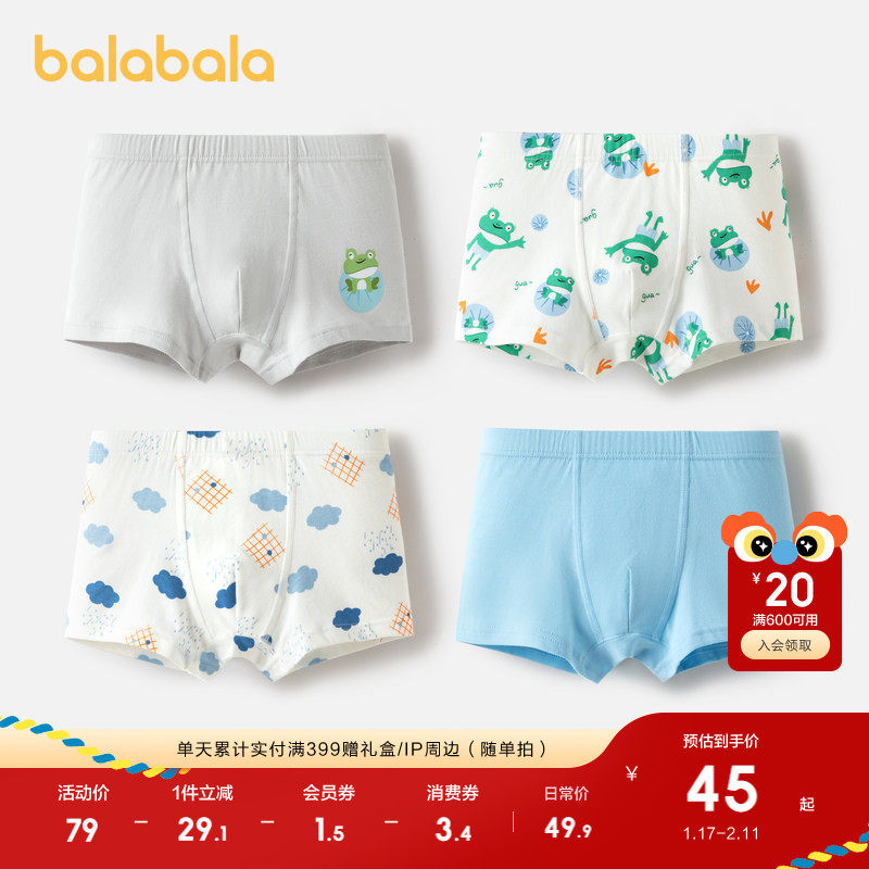 巴拉巴拉男童内裤棉平角儿童四角短裤抑菌裆亲肤宝宝不夹PP四条装