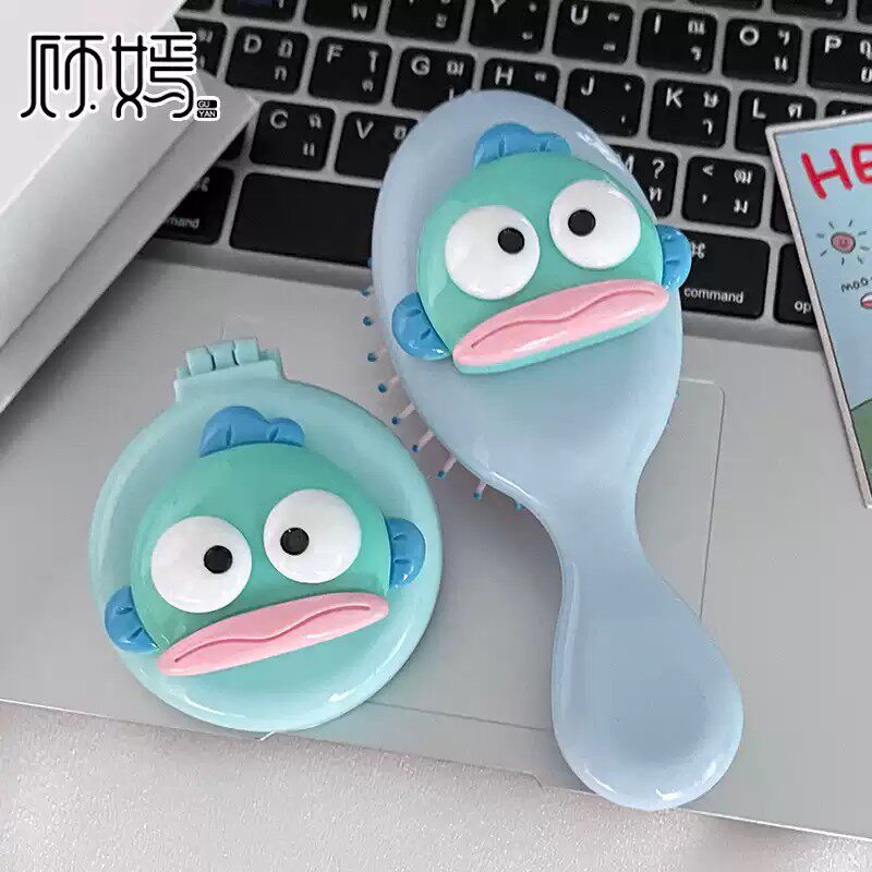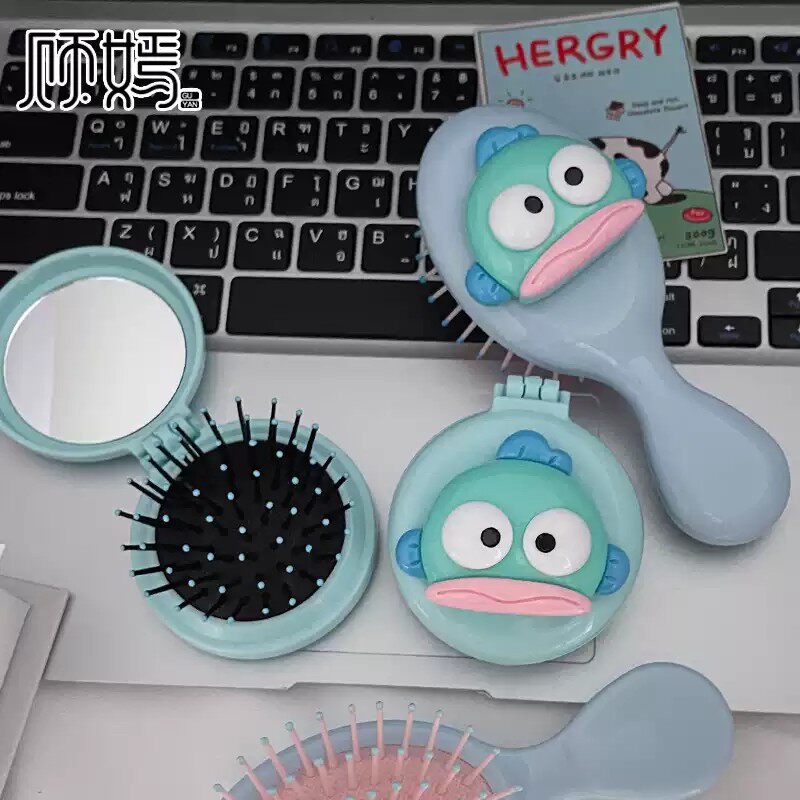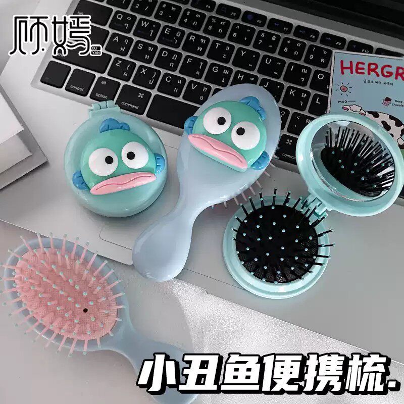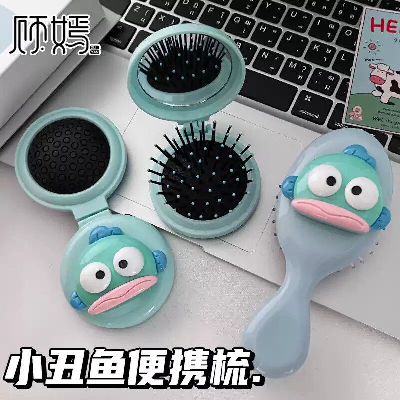 卡通搞笑小丑鱼气囊梳子小巧便携式折叠一体镜梳超萌气垫按摩梳