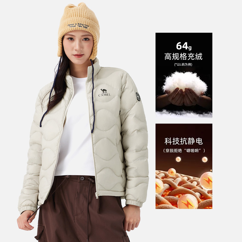 骆驼轻薄羽绒服女25冬季户外90绒立领短款保暖排骨羽绒外套男