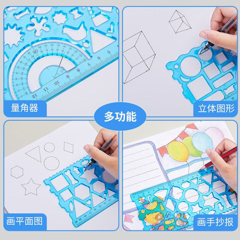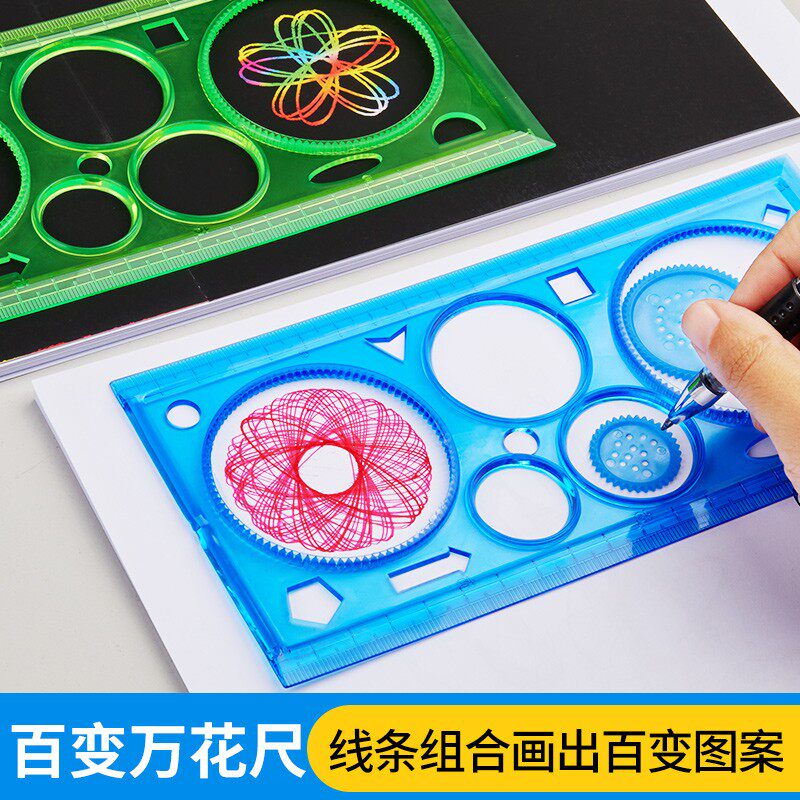 六品堂尺子小学生多功能百变万花尺手抄报模板专用量角器几何学习