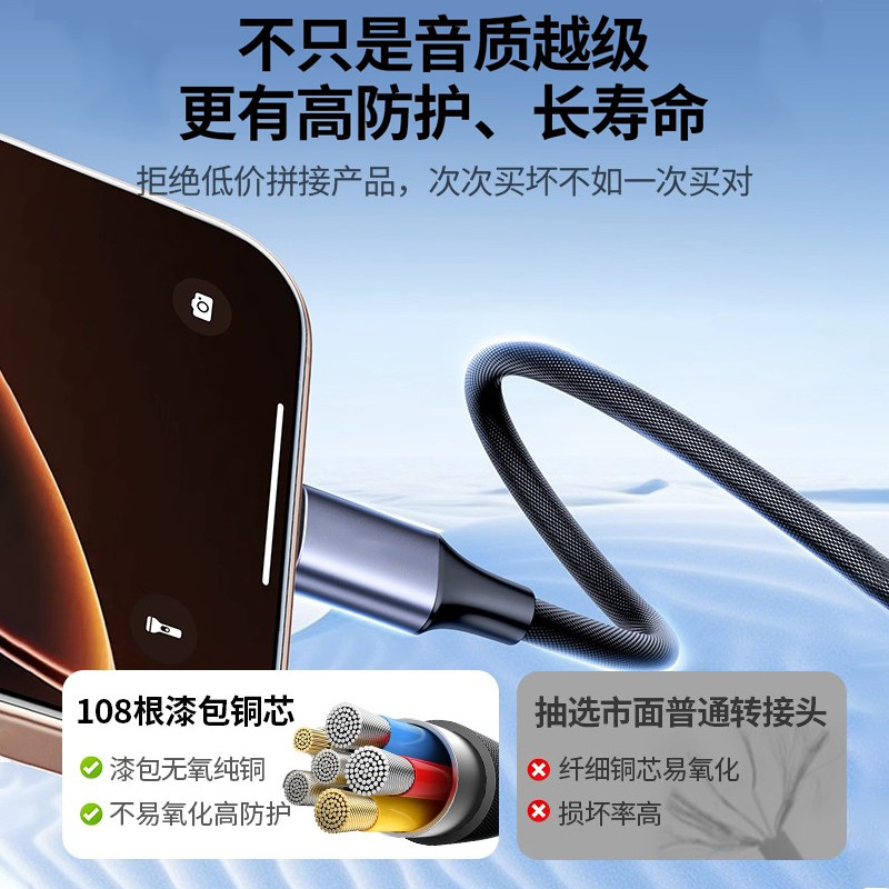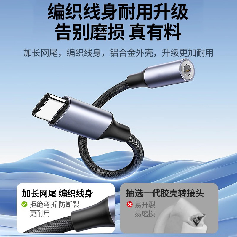艾莱克typec耳机转接头转换头适用于华为vivo小米15苹果16手机typec转3.5mm圆孔音频耳机孔转tpc转接口转换器