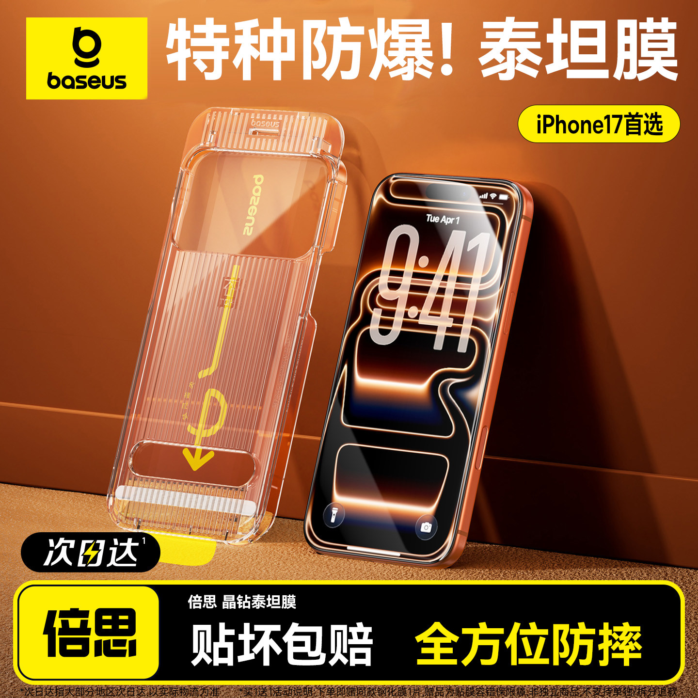 倍思无纹膜适用苹果iPhone17钢化膜AR抗反射16ProMax保护膜15Pro无尘仓14手机贴膜13全屏覆盖12抗摔11防爆Air