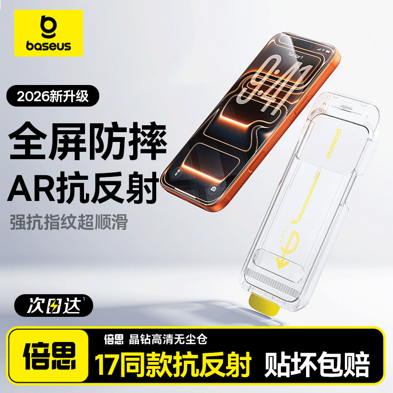 倍思AR膜iPhone17钢化膜17Pro适用苹果16/15ProMax无尘仓14/13手机贴膜ip全屏覆盖12高清增透保护防摔抗反射
