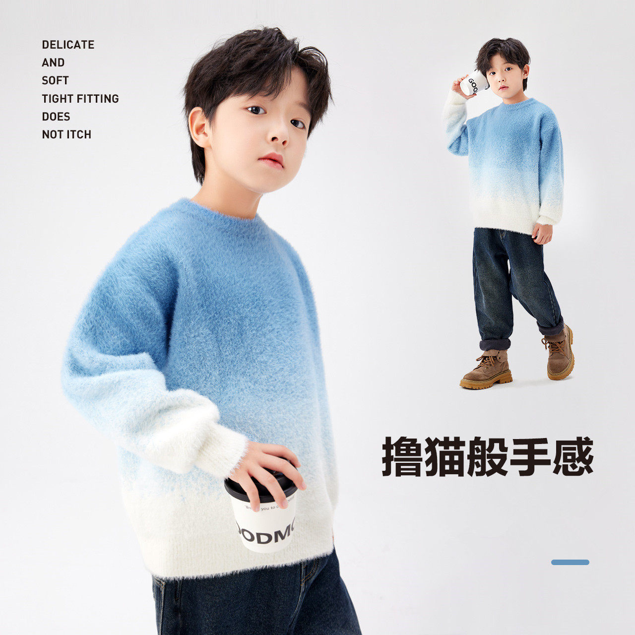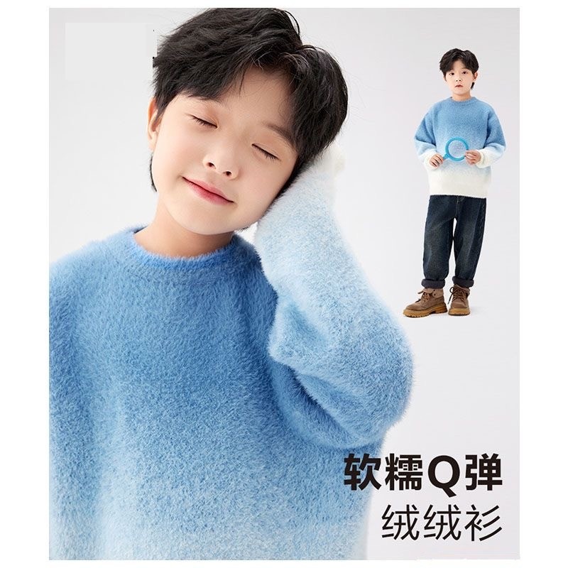 童装男童渐变毛衣加厚秋冬2025新款儿童保暖貂绒针织衫冬季上衣