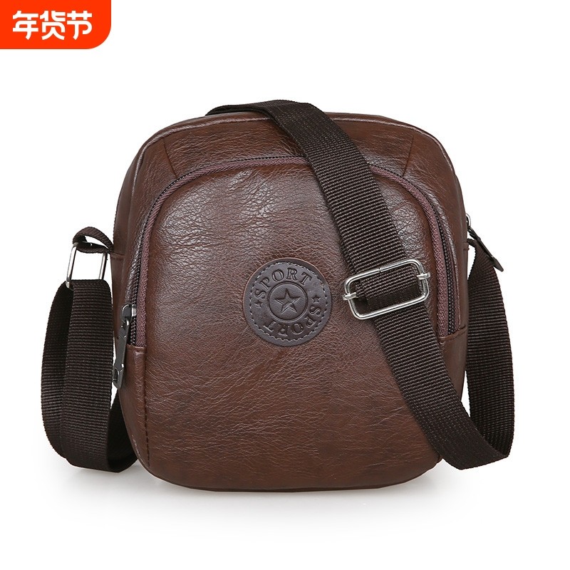 男士复古PU单肩包休闲斜挎小包包韩版百搭潮牌小背包男包手工