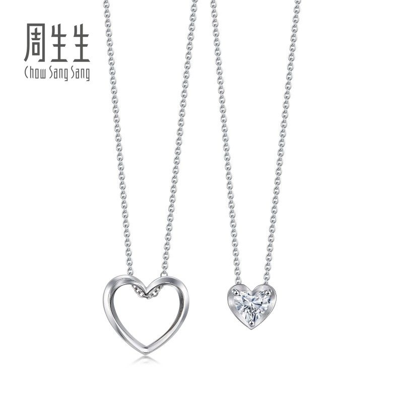 周生生珠宝饰品心形钻石套链18K金钻石项链92516U